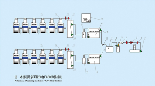• 产品描述:清梳联主要流程三 (纯棉环锭纺2万锭 两个品种)